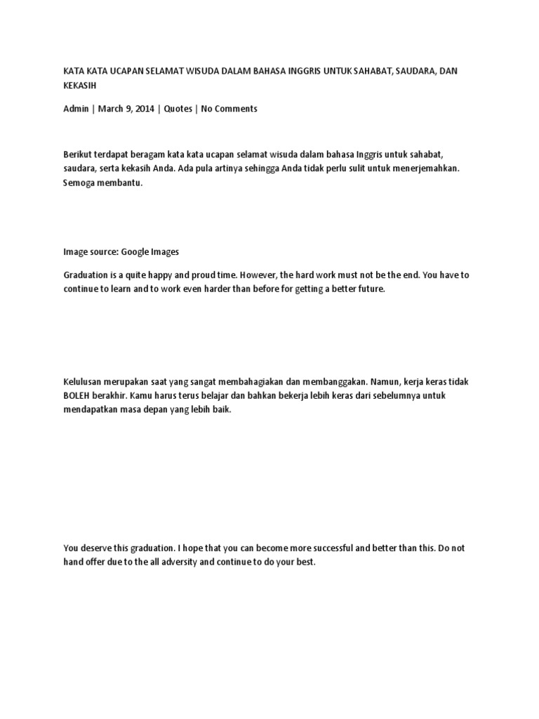 Kata Kata Ucapan Selamat Wisuda Dalam Bahasa Inggris Untuk Sahabat via es.scribd.com